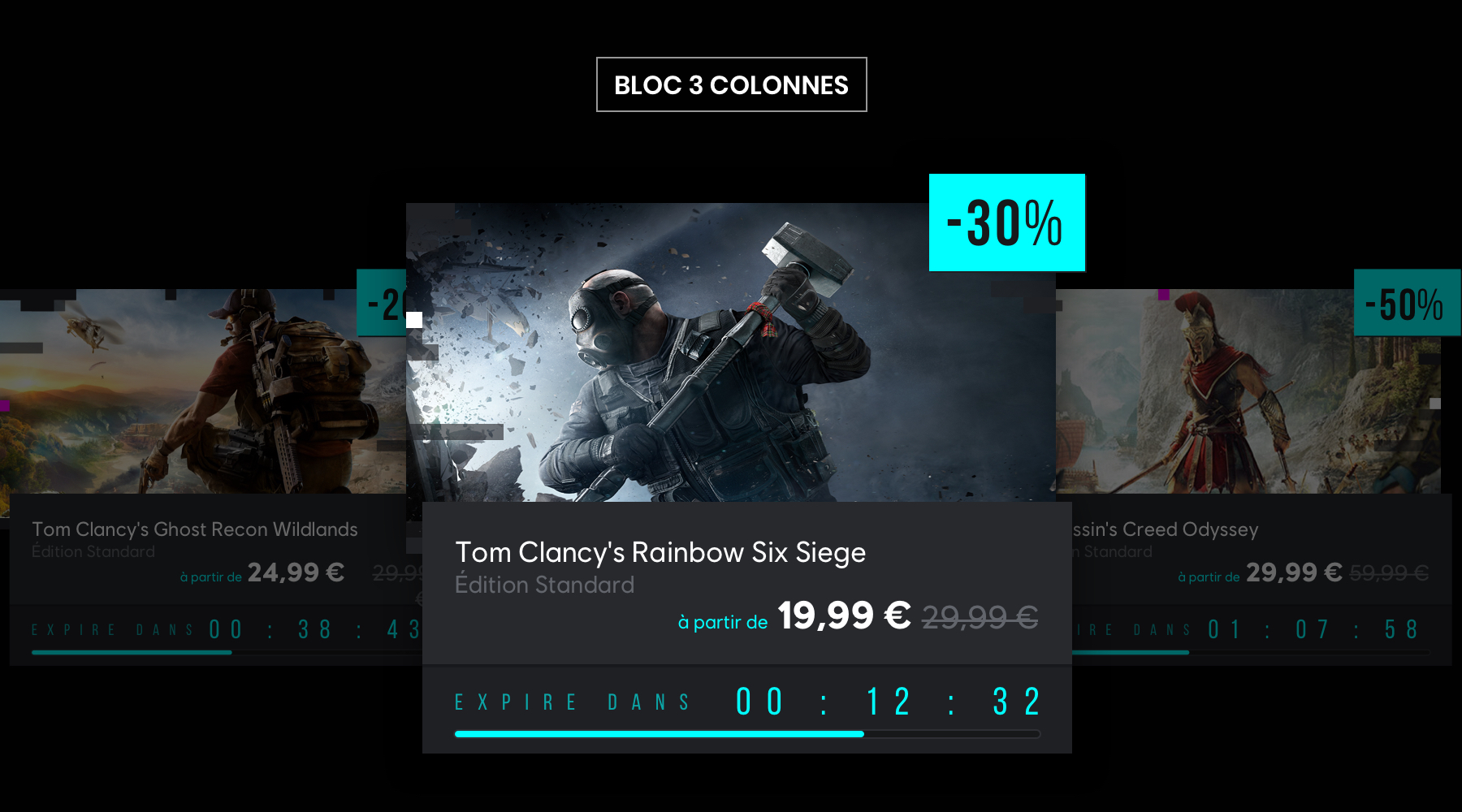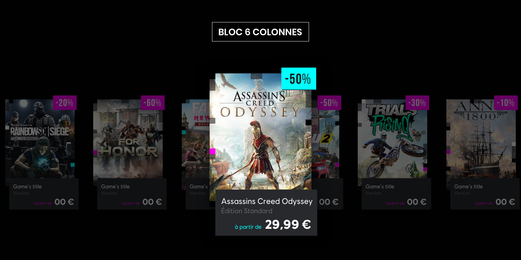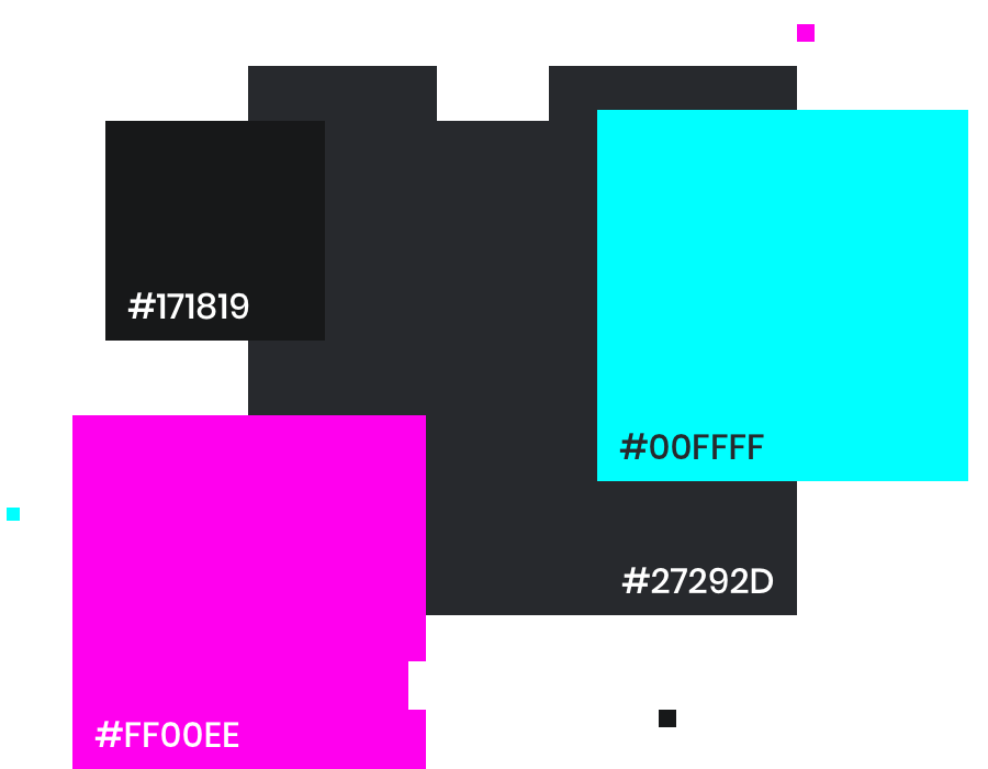 À partir d’une base sombre, les accents utilisés sont un cyan et un magenta afin d’attirer le regard et amener du peps, tout en rappelant une thématique technologique.